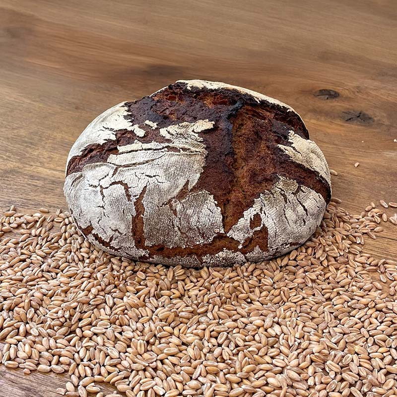 Kräftiges Mischbrot mit feiner Röstnote und aromatischem Sauerteig – saftig, würzig und ideal für herzhafte Beläge.