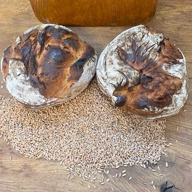 Unser Bäckermeister backt im Holzofen verschiedene Brotsorten. Dabei werden hochwertige Zutaten direkt vom Hof verwendet: